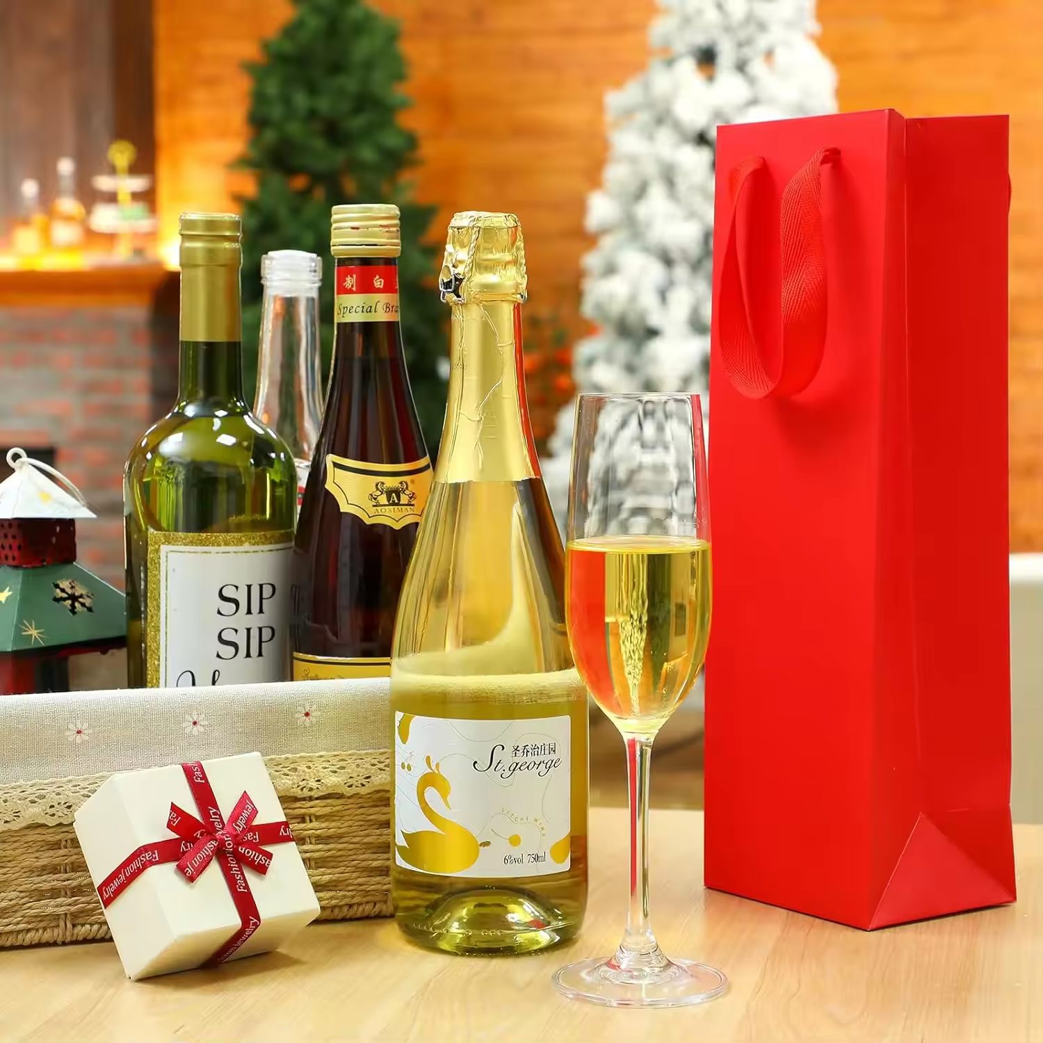 Colorful Wine Single Bottle with Handle Weddings Birthdays Christmas Party Supplies Custom Red Wine Paper Bag