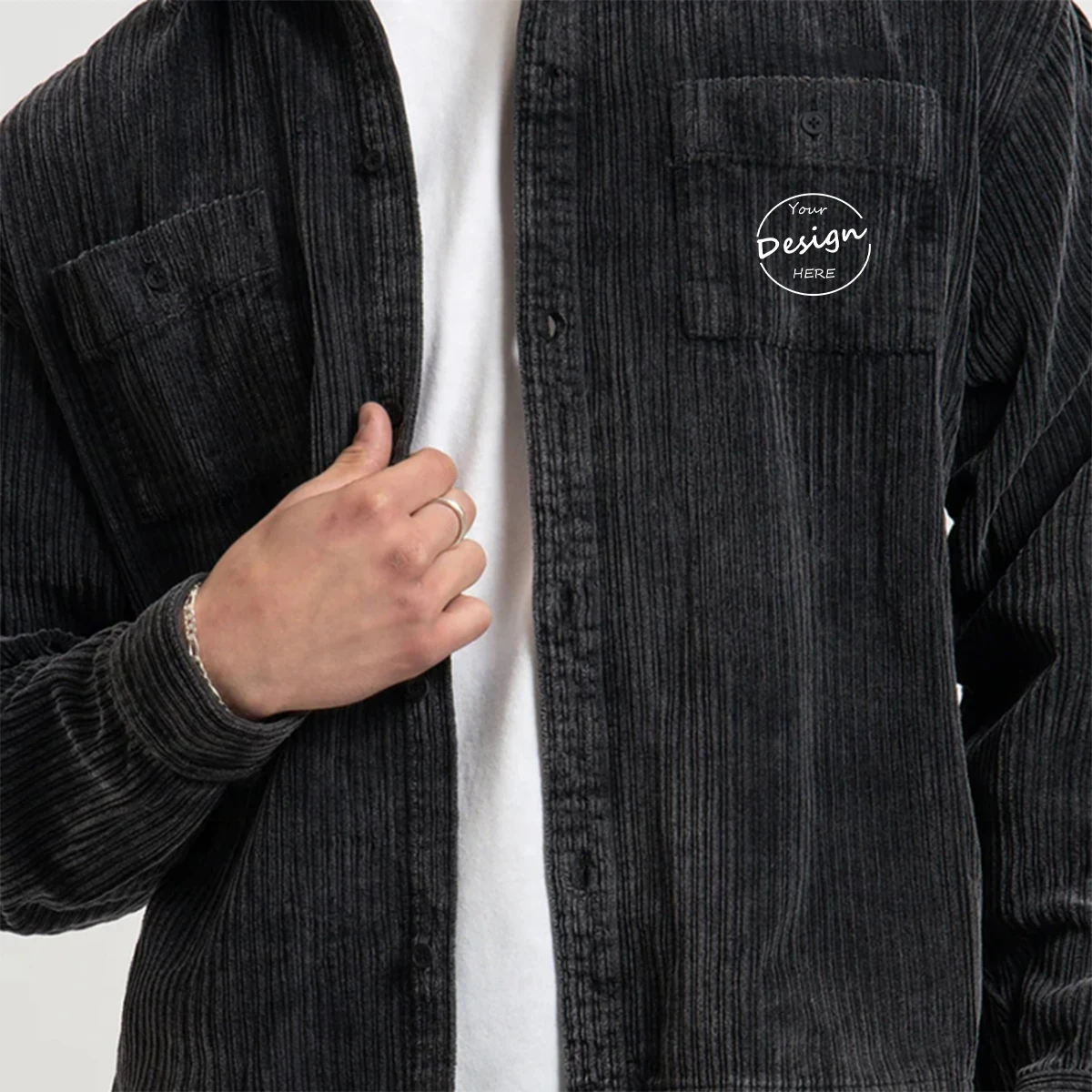 Autumn Mens Oversize Long Sleeve Corduroy Fabric Jacket Men Winter Heavy Weight Jacket Custom Embroidery Logo