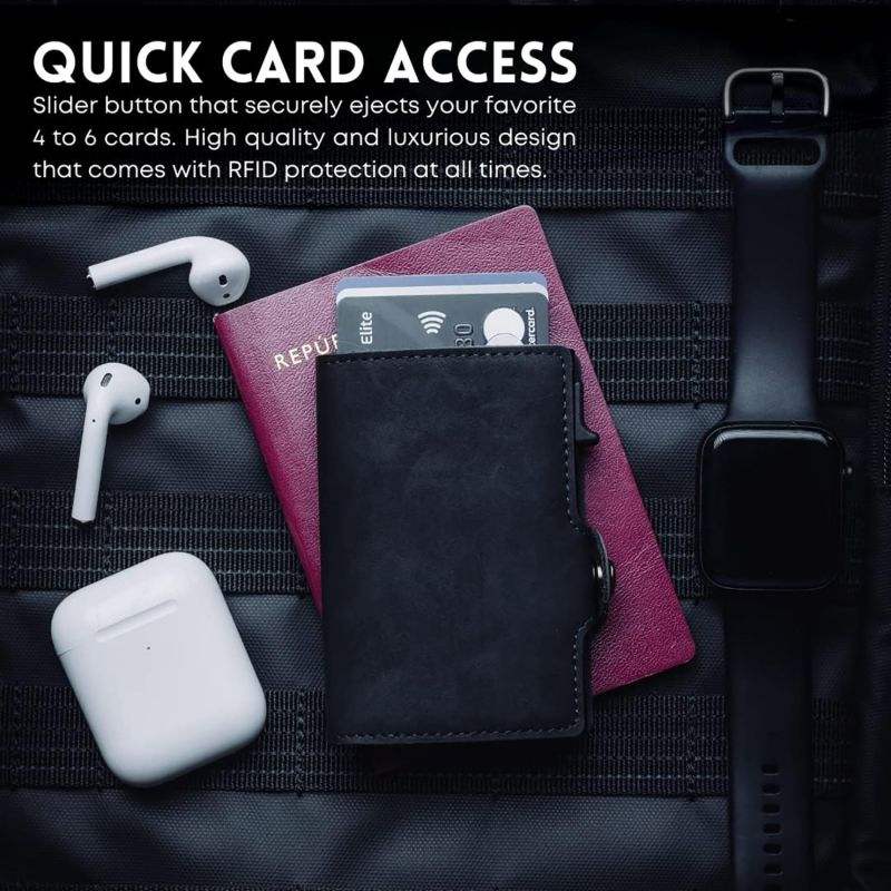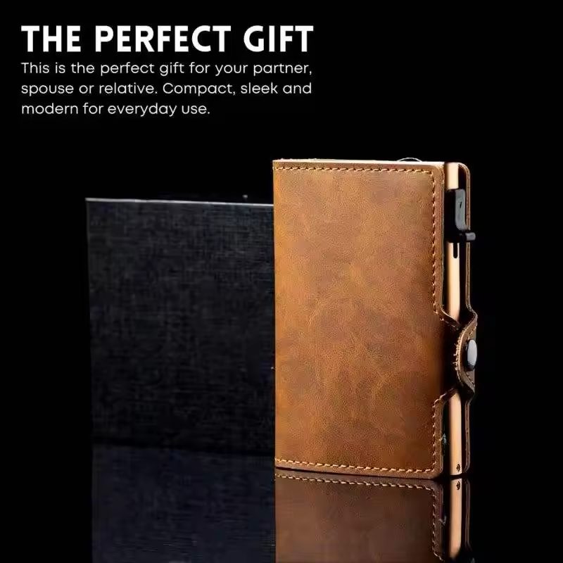 Custom Men PU Leather Wallet Designer Pop-Up Metal Aluminum Credit Card Holder RFID Shielding Safe Portefeuille Homme Cuir
