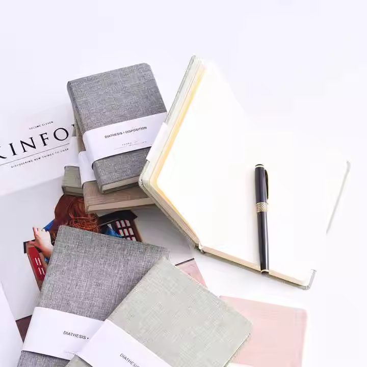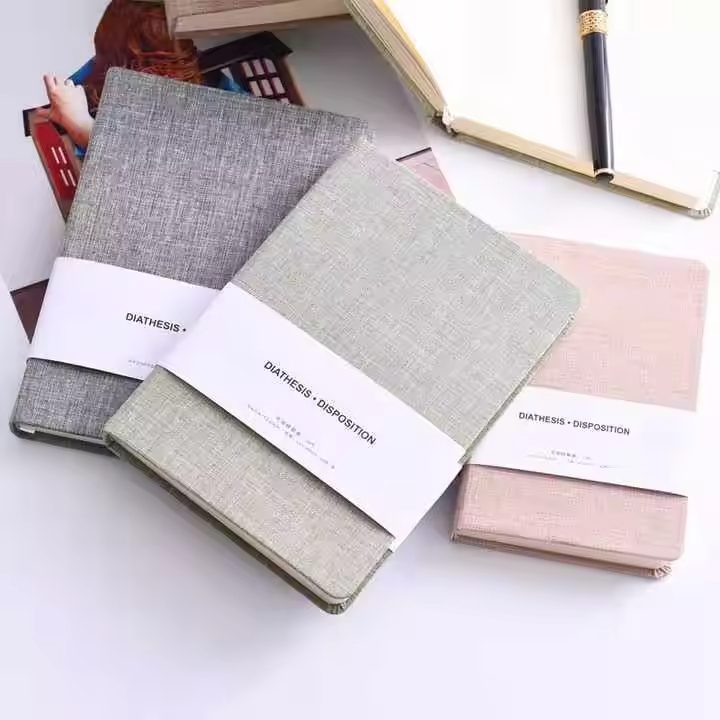 Custom Printed Hardcover Thick Cloth Cover Notebook Lay Flat Hardbound Cover Linen Journal Promotion Diary School Supplies