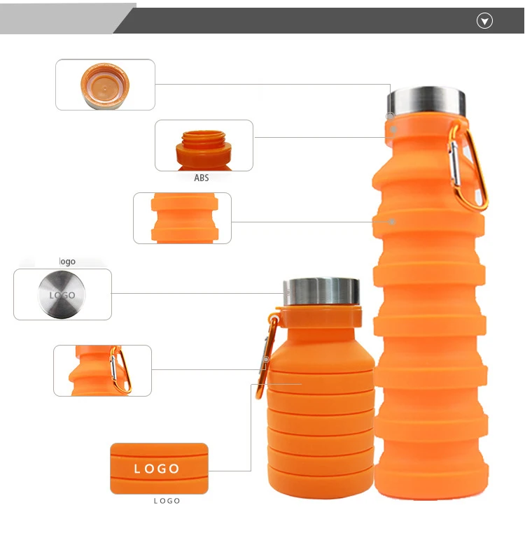 Factory Travel Portable Hiking Accordion Bottle Rainbow Collapsible Sports Water Bottle Reusable Silicone Folding Water Bottle
