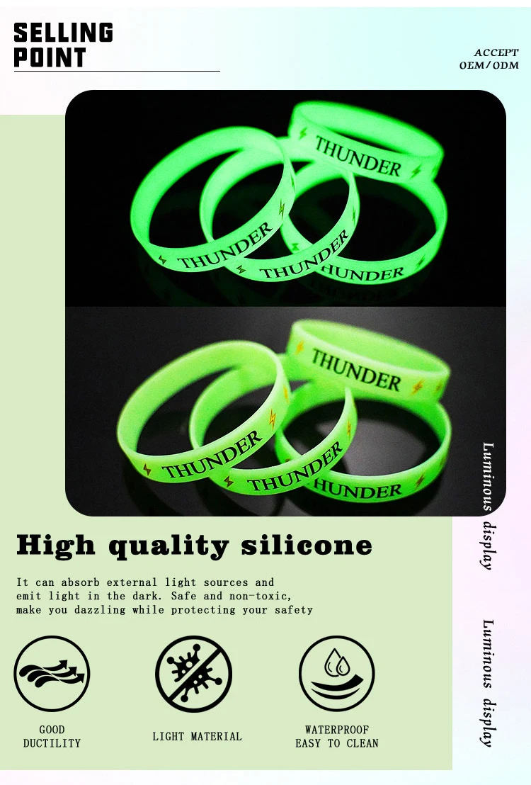 Customized Personalized Activity Wristband Creative Rubber Silicone Luminous Silicone Wristband With Logo