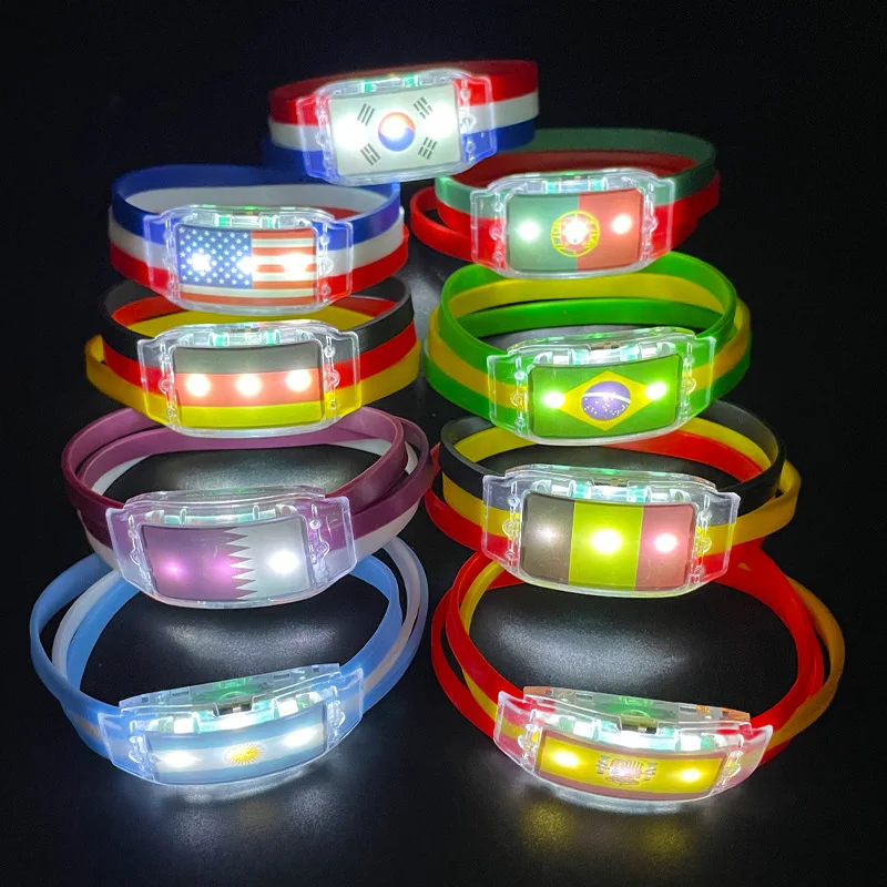 Hot selling LED luminous silicone national flag bracelet for sports events
