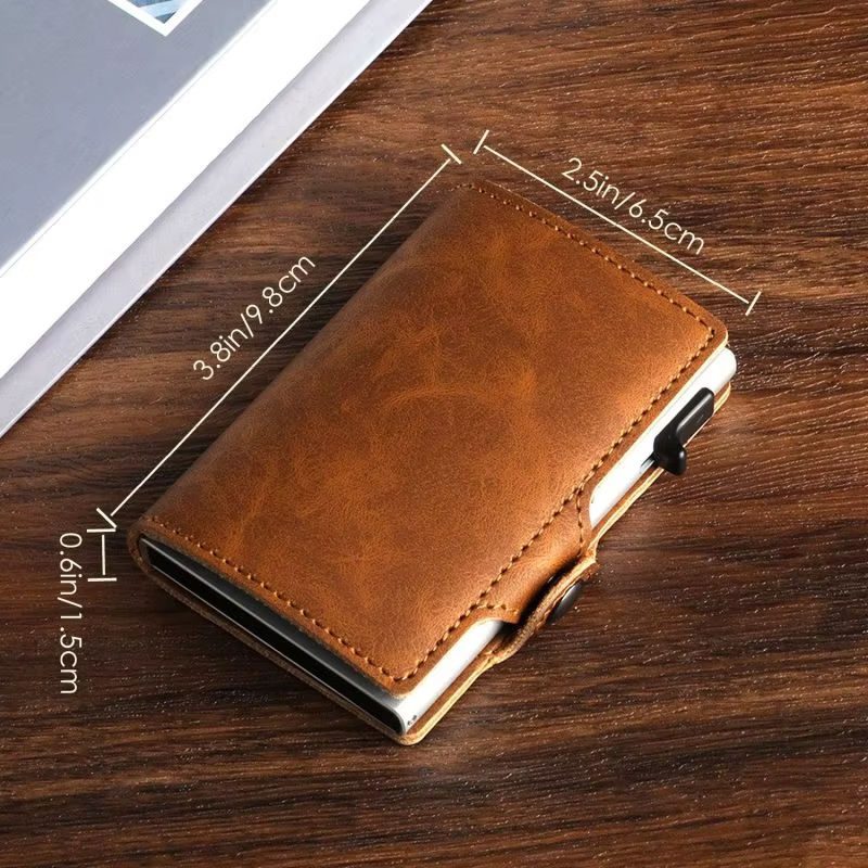 Customized Logo Leather Card Holder Credit RFID Wallet Pop up Business ID Card Holder Aluminum Name Card Binder Holder