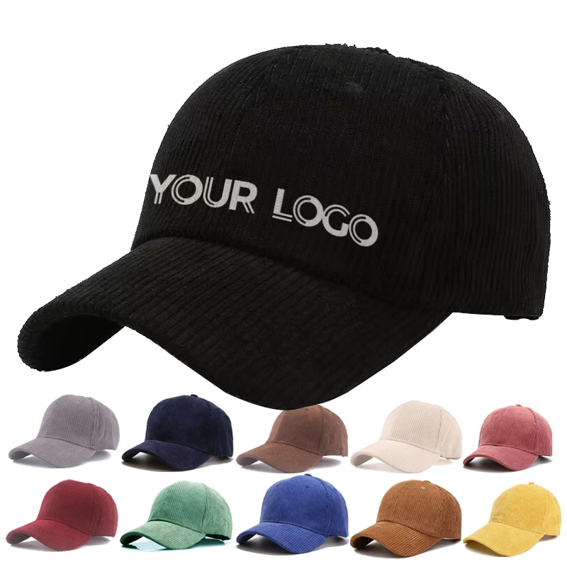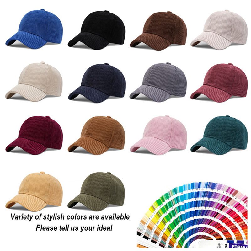 Custom Logo 6 Panel Corduroy Blank Sport Baseball Cap for Men Women