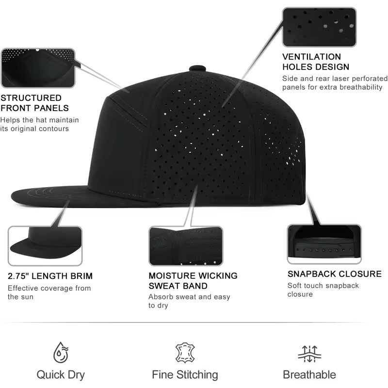 Wholesale Flat Waterproof and Sunshade Baseball Cap Hip-hop Baseball Cap With Custom Embroidery Logo Fitted Unisex