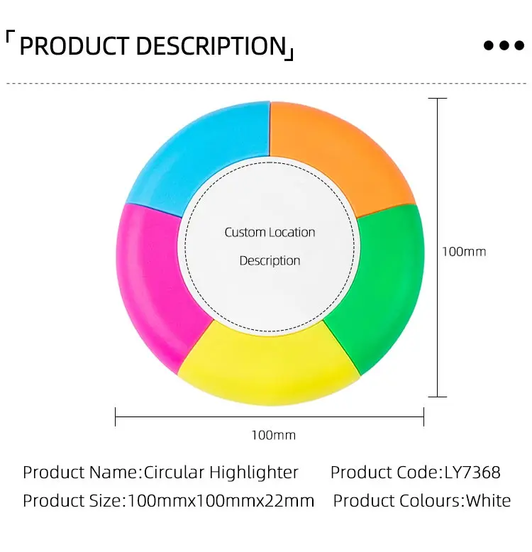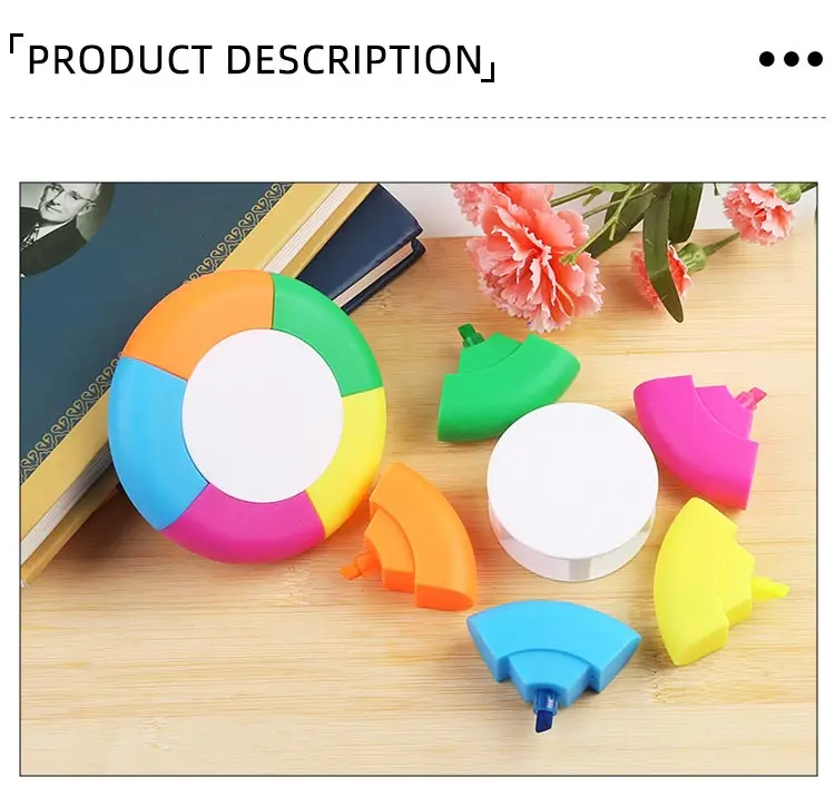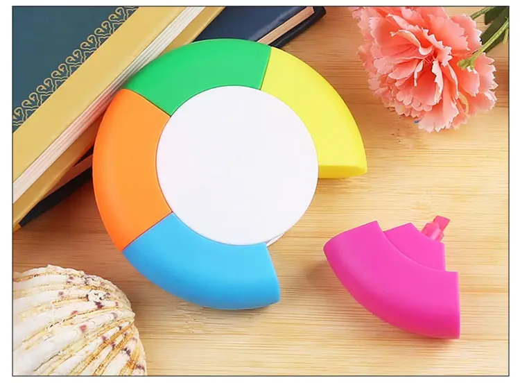 Wholesale New Arrival Promotional Gifts Non Scented Circular Highlighter Rounded Shape Five Colour Good for Custom Logo