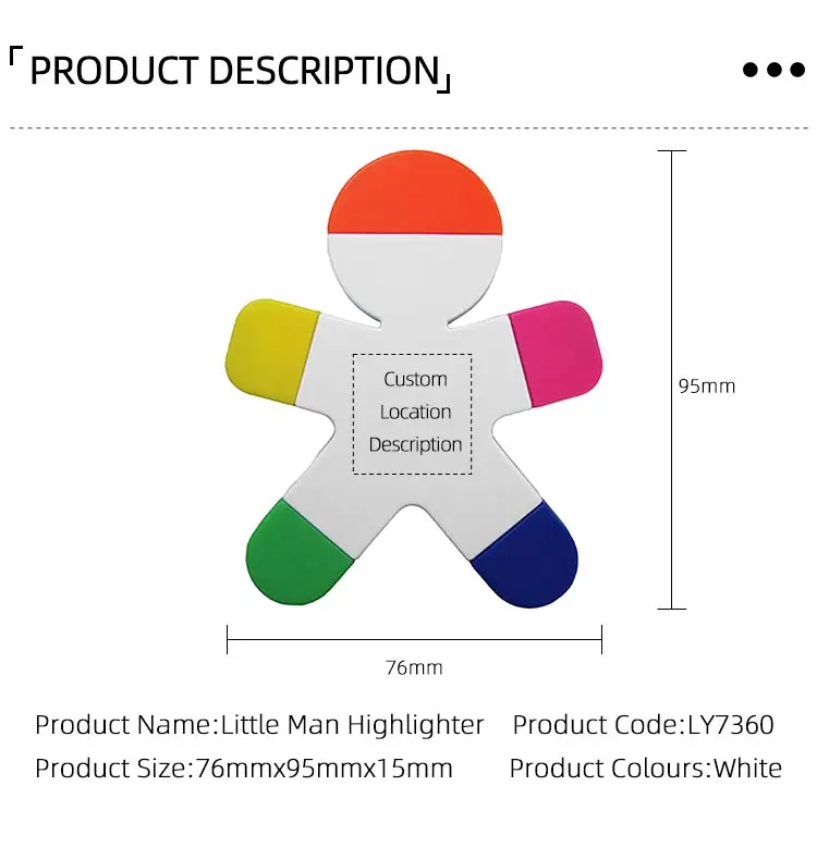 Wholesale New Arrival Promotional Gifts Non Scented Little Man Shaped Highlighter Five Colour Good for Custom Logo