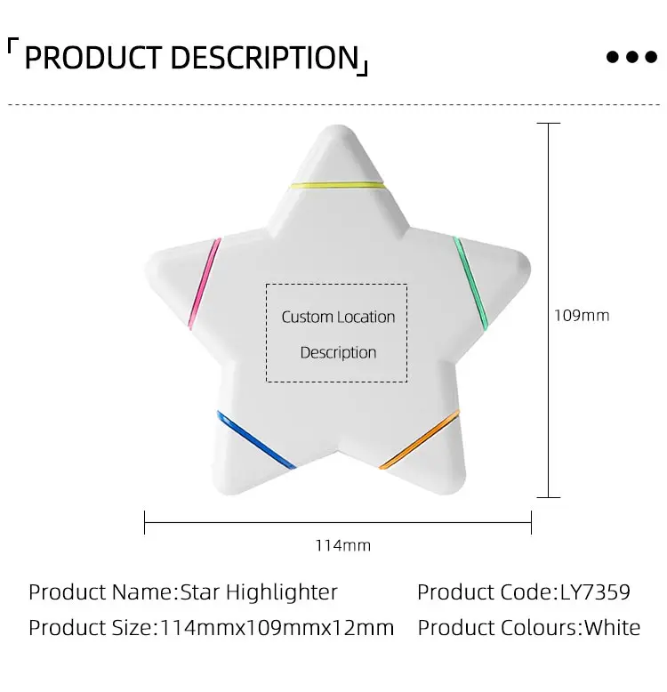 Wholesale New Arrival Promotional Gifts Non Scented Star Shaped Highlighter Five Colour Good for Custom Logo